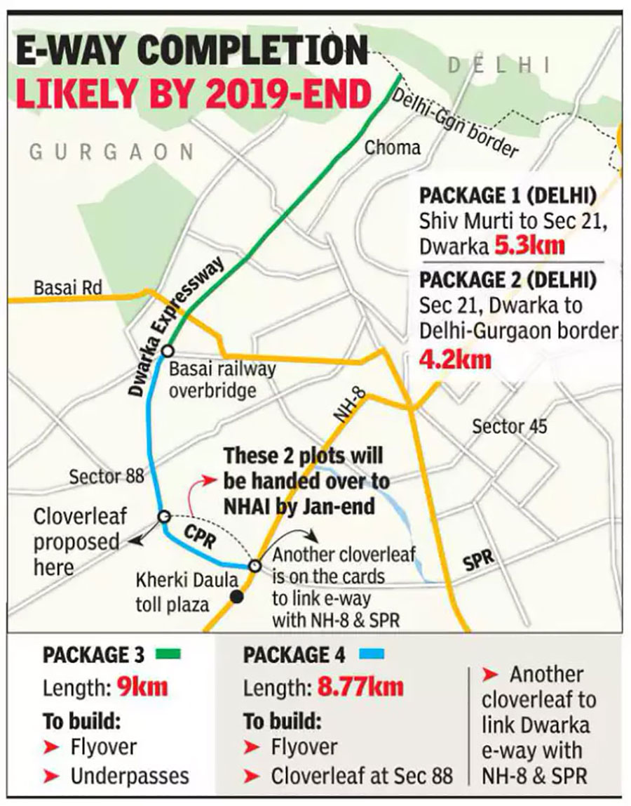 - Package 4: Rail over Bridge to Kherki Daula: This stretch will start from Rail over Bridge at Basai and end at a cloverleaf near Kherki Daula at Km 40 of the NH-48, thus including the route originally planned for the CPR.