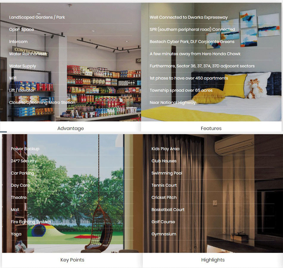 The ideal location is a distinctive feature of this place. The most sought-after location has turned into a landmark with the arrival of such a world-class development. Located in Sector 36A, Gurgaon, it offers smooth connectivity through CPR (Central Peripheral Road Gurgaon), ISBT Metro. It provides enhanced traveling speed. So, location is itself a time saver. It offers feasible access to IGI Airport, Delhi Border, MNC’s and IT.