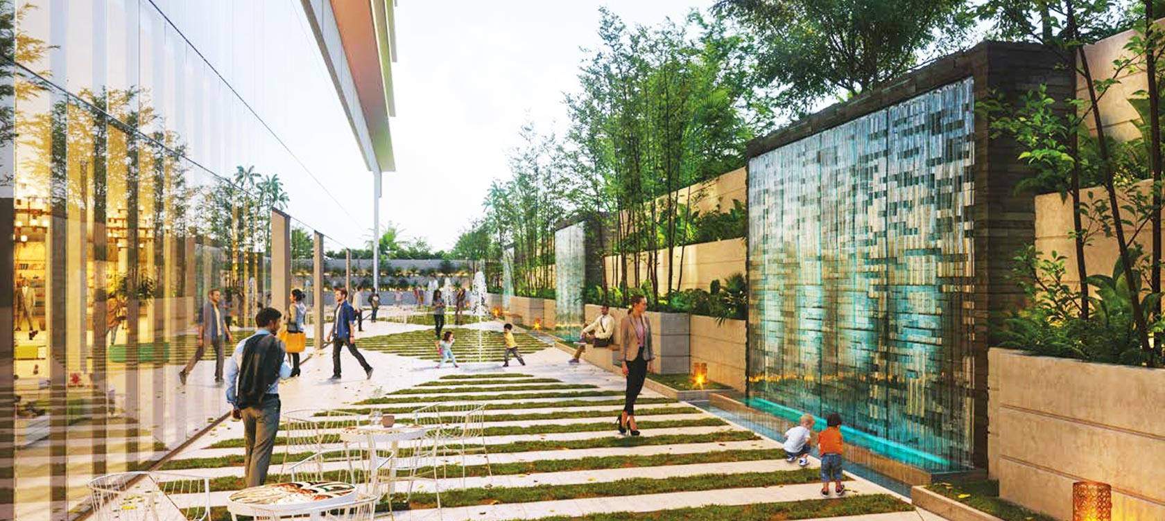 • Richly landscaped promenade and plazas with exotic water bodies and landscaping.