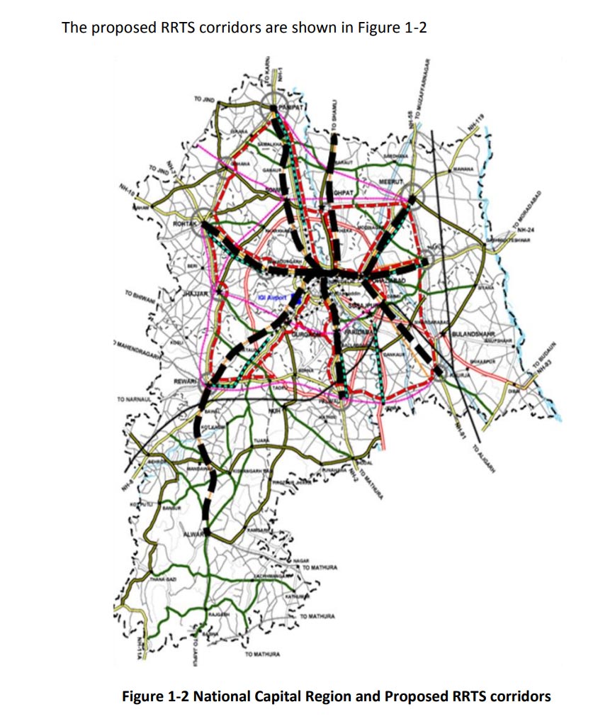 National Capital Region Planning Board has identified eight corridors for rail-based high-speed commuter transit system, including: