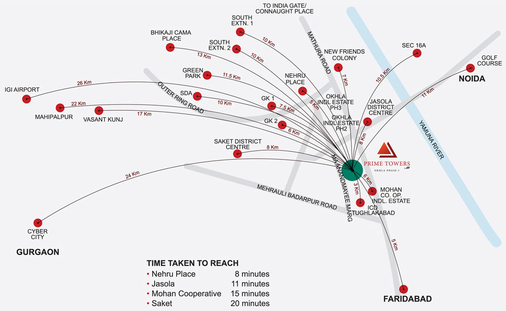 One of the best commercial space offered by DLF named Prime Tower located in the hearts of South Delhi. This is one the best properties to grow your business to the heights of success. It is been located in Okhla Phase 1.
